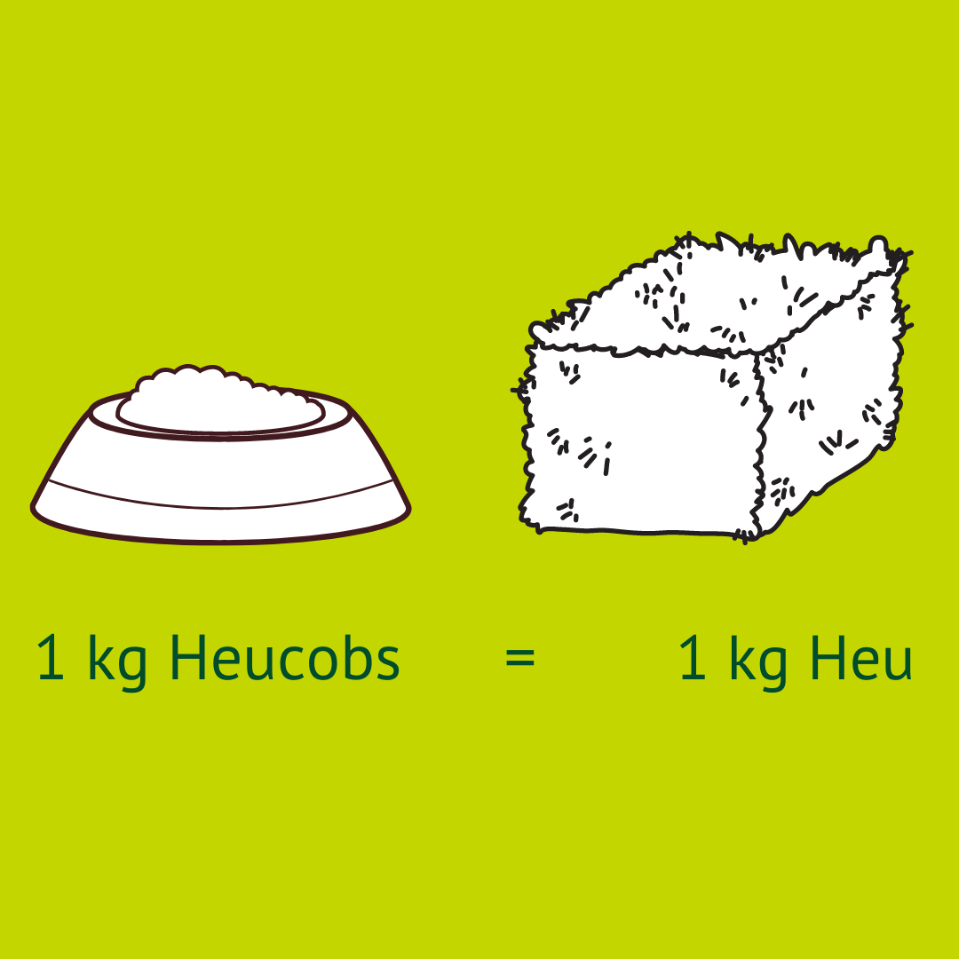Afhankelijk of je hooikolven als hooivervanger neemt of voert, pas je eenvoudig de hoeveelheid per maaltijd aan.